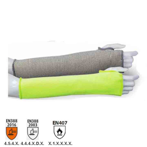 Vágásbiztos alkarvédő (35 cm) Megfelelőségek: EN420 EN388 EN407, 100°C hőálló Maximális, 5-ös szintű vágásbiztosságot garantáló, ugyanakkor hőálló alkarvédő Food Safe megfelelősége is van az-az élelmiszerrel érintkezhet. Magyarán élelmiszeriparban is h