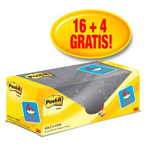 1 kép POST-IT 3M 654Y-20 öntapadó jegyzettömb Négyszögletes Sárga 100 lapok (3M0461)