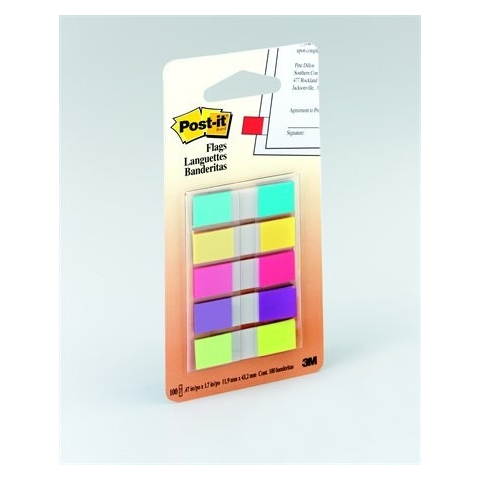 A Post-it oldaljelölő lapok tökéletesek rövid megjegyzések betűzésére, korrektúrázásra (telefonszámok, árak, hivatkozások). Feltűnő, 5 féle neon színű jelölő egy csomagban. Méret: 12x43 mm. 5x20 lapos.