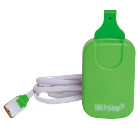 Magyarországon kb. 90.000 gyermek küzd az éjszakai alvás közbeni bepisiléssel (enuresis) a 6-18 éves korosztályban. A WET STOP3 cseppcsengő (pisi stop) kiváló eszköz az enuresis kezelésére, ha a háttérben lelki vagy pszichés okok állnak. A rendszer egy riasztó egységből és egy cserélhető érzékelő szenzorból áll. A mágneses rögzítő füllel a riasztó modul kényelmesen viselhető a pizsamán vagy pólón. A szenzor a pizsama alsó részére vagy az alsóneműre cs