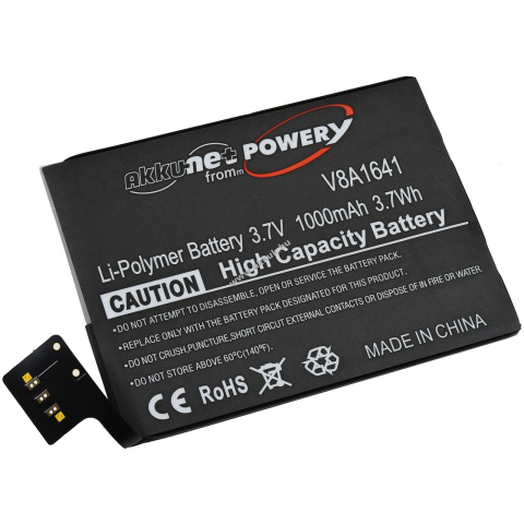 Feszültség: 3,7V - Teljesítmény: 1000mAh/3,7Wh - Típus: Li-Polymer - Méret: 66,10mm x 49,80mm x 2,30mm