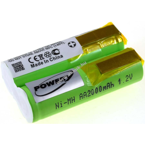 Feszültség: 2,4V - Teljesítmény: 2000mAh/4,8Wh - Típus: NiMH - Méret: 50mm x 29mm x 14,5mm