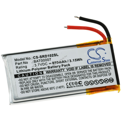 Feszültség: 3,7V - Teljesítmény: 850mAh/3,1Wh - Típus: Li-Polymer - Méret: 54,80mm x 25,20mm x 5,50mm