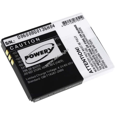 Feszültség: 3,7V - Teljesítmény: 750mAh/2,6Wh - Típus: Li-Ion - Méret: 47,3mm x 35,6mm x 4,5mm