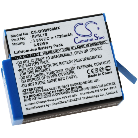 Feszültség: 3,85V - Teljesítmény: 1720mAh/6,6Wh - Típus: Li-Ion - Méret: 41mm x 34mm x 13mm