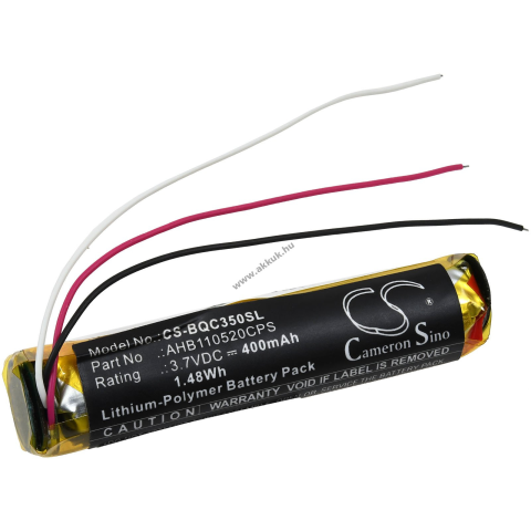Feszültség: 3,7V - Teljesítmény: 400mAh/1,5Wh - Típus: Li-Polymer - Méret: 47mm x 10mm x 10mm