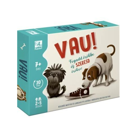 Fogadd örökbe és szeresd örökre! – így szól a Vau szlogenje, ami a kutyák örökbefogadására és a felelős állattartás jelentőségére hívja fel a figyelmet. A játék célja pedig egyszerű: legyél te a leggyorsabb, aki öt boldog kutyus gazdijává válik! Gyűjtsd szorgosan a csontlóvékat, szeretgesd a kutyusaidat, és az sem árt, ha időnként kutyaszorítóba juttatod a többi gazdit. Ja, és ne felejtsd el a jutifalikat sem! De azért csak óvatosan a kártyákkal, me