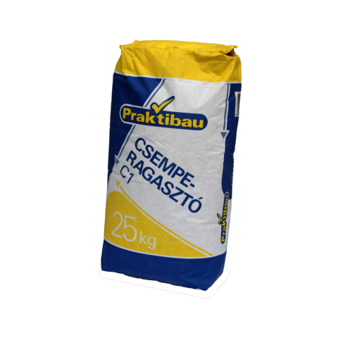Praktibau csemperagasztó C1, 25 kg. Felhasználásra kész, gyárilag előkevert, por alakú, cement bázisú, adalékanyagot tartalmazó, C1 minősítésű beltéri csemperagasztó.