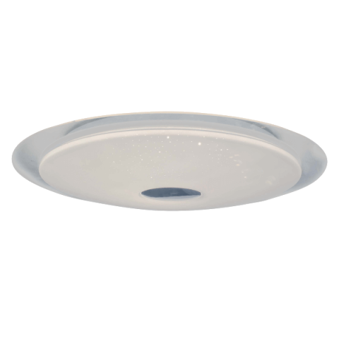 Műanyag lámpabura csillag-effekttel. Átmérője 46 cm. Beépített LED. Távirányítóval szabályozható, az elem tartozék. Színhőmérséklet tartomány: 3000-6500 K. Éjszakai fény funkció. Időzítő funkció. Ez a termék E energiahatékonysági osztályba sorolt fényforrást tartalmaz. Max. 2700 lumen. Lámpaélettartam 30.000 óra. 220-240V~, 50/60 Hz, max. 24W, max. 2700 lm. Anyagösszetétel: vas 65%, PMMA 25%, elektronikai tartozékok 10%.