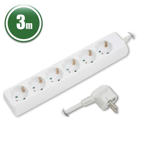 6-os elosztó 250 V • 10 / 16 A 3 m Általános, fehér elosztó, amely használata javasolt háztartásban, irodákban. Jó minőségű, vastag szigetelése megvédi a kábelt a sérülésektől, a kábel esetleges megtörésétől. Gyerekzárral Fehér színben 90°-os dugóv