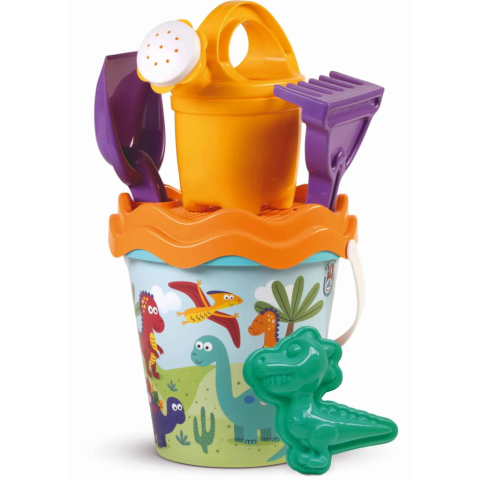 RAKTÁRRÓL AZONNAL! Dínós homokozó szett 17 x 32 cm - Nagy méret Eme játékszett egy lenyűgöző, dinoszaurusz mintákkal díszített vödröt tartalmaz, amely azonnal felkelti a gyerekek fantáziáját és indítja el őket egy őskori kalandra a homok birodalmában. A k
