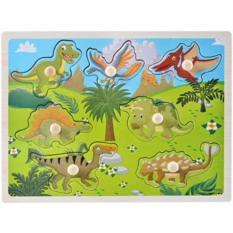 RAKTÁRRÓL AZONNAL! Fogantyús készségfejlesztő fa puzzle - Dínók Ezzel az aranyos, fogantyús fa puzzle segítségével a kisebb gyerekek megismerhetik a dínókat közelebbről. A színes képeket érdekesnek fogják találni a picik, ráadásul megismerkedhetnek a köly