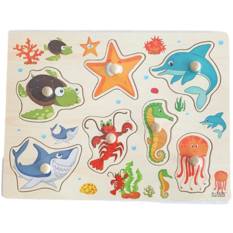 1 kép    PRC Fogantyús fa puzzle, fogós puzzle, kirakó 30x23 cm - Tengeri állatok Nr3