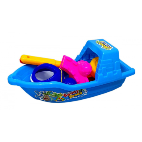 RAKTÁRRÓL AZONNAL! Hajós homokozó szett 30 x 12 cm - Kis méret Ez a homokozó szett főképp egy müanyag hajót tartalmaz melyet magaddal vihetsz akár a strandra is! A szett tartalmaz a hajó mellett 1 db kis kancsót, 2 db különböző lapátot és 2 db homokozó fo