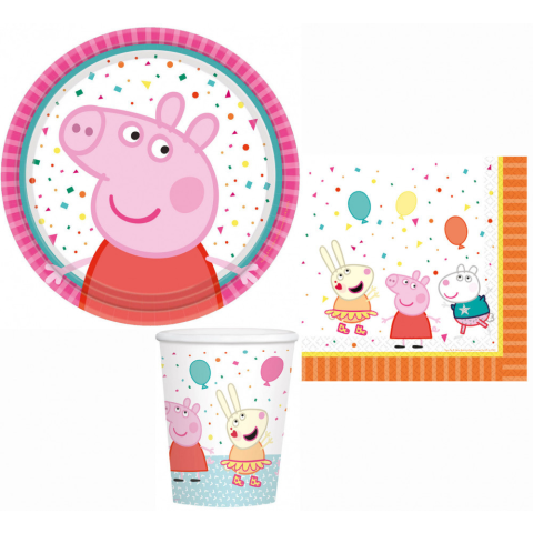 RAKTÁRRÓL AZONNAL! Peppa Pig, Peppa malac party szett 32 darabos Tartalma: - 16 db szalvéta 30x30 - 8 db pohár 250 ml - 8 db tányér 18 cm A szülők és a gyerekek kedvenc party szettjei A szülők dolgát megkönnyítjük az előre összeválogatott party szettek