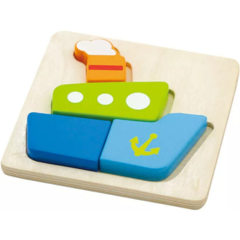 RAKTÁRRÓL AZONNAL! Hajó formát ábrázoló puzzle magasított kivitelben. Alapanyagát tekintve fából készült, a használt festékanyag nem tartalmaz egészségre káros anyagokat, így az teljesen biztonságos a kisgyermekek számára is. Magasított kivitelének köszön