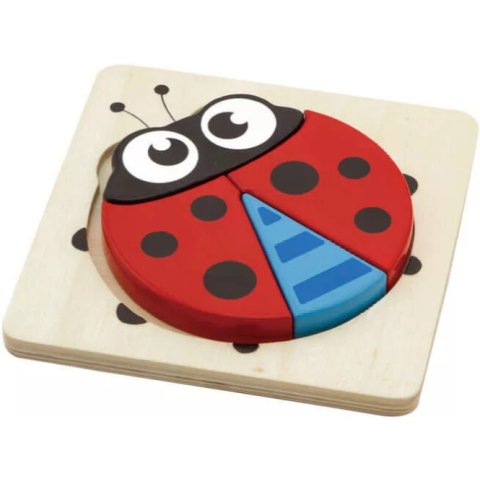 RAKTÁRRÓL AZONNAL! Katica formát ábrázoló puzzle magasított kivitelben. Alapanyagát tekintve fából készült, a használt festékanyag nem tartalmaz egészségre káros anyagokat, így az teljesen biztonságos a kisgyermekek számára is. Magasított kivitelének kösz