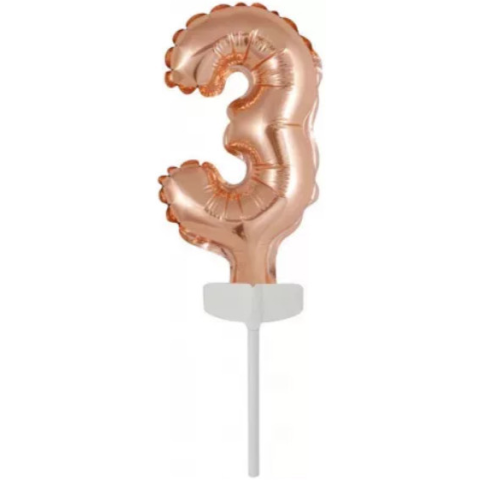 1 kép PRC Rose Gold 3-as szám fólia lufi tortára 13 cm