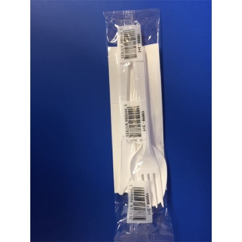 1 kép PRC Újrahasználható 15099 fehér műanyag kanál kés villa szalvéta 3+1 szett