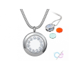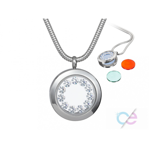Kiváló minőségű sebészeti acélból és cirkónia kövekből készült Preciosa nyaklánc, mely alkalmazkodik az ön hangulatához vagy ruhatárához. A középső színes lapocska cseréjével a hangulatához igazíthatja ezt az elegáns nyakéket. A csomag összesen háromféle
