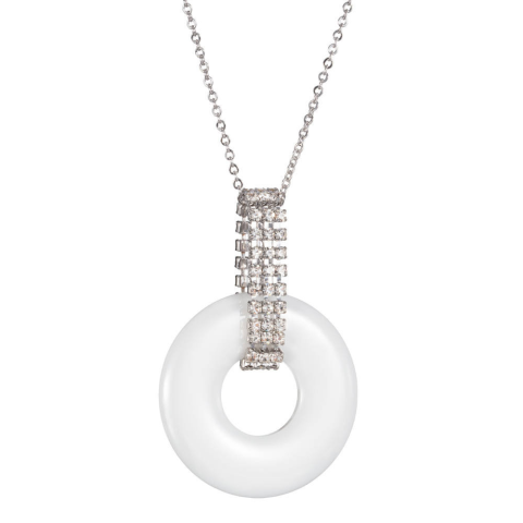 Kifinomultan elegáns, nőies nyakék, melyen egy fehér gyűrűt ölel egy ezüst színű, apró kövekkel kirakott strasszlánc. A dizájnja modern és stílusos, így tökéletes választás különleges alkalmakra vagy mindennapi viseletre. A hozzá tartozó fülbevalóval tehe