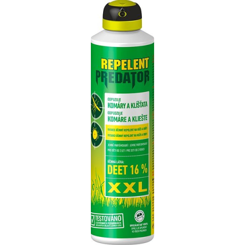 Rovarriasztó - kullancsok és szúnyogok ellen, gyermekek számára alkalmas és DEET-et tartalmaz, DEET tartalom 16 %, spray, illatosított, alkalmazása bőrre és ruhára, űrtartalma 300 ml, alkalmas 2 éves kortól A nyár nemcsak a napsütéses, hanem a kullancsokról és a kellemetlen rovarokról. A finoman illatosított PREDATOR 16 % XXL rovarriasztó rendkívül hatékony védelmet nyújt legalább 5 órá