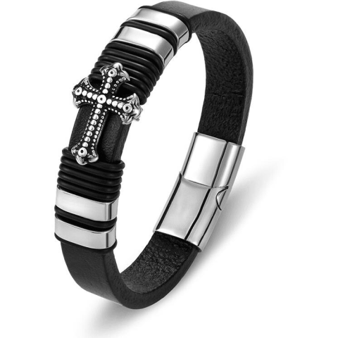 Predator Q1 bőr karkötő - kereszt BXG6037 - 21,5cm (2559) karkötő árgrafikon