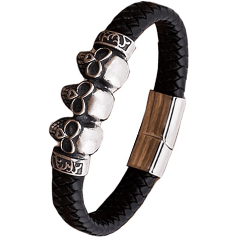 Predator Q1 bőr karkötő - koponyák BXG6093 - 21,5cm (2799)