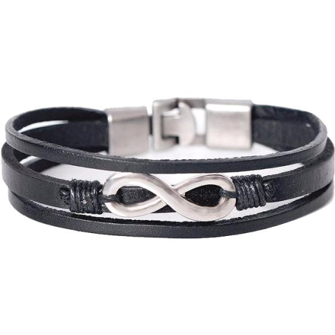 1 kép Predator Q1 bőr karkötő - végtelen fekete SLPG1588 - 18cm