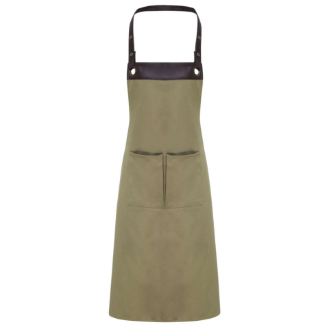 Premier PR123 hosszú kötény zsebbel és patentos nyakpánttal Premier, Khaki/Brown-U lakástextília termékleírás