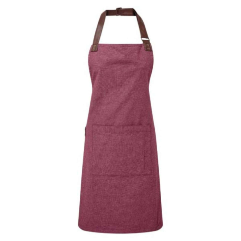 Premier PR144 zsebes hosszú pamut kötény textilbőr nyakpánttal Premier, Burgundy-U lakástextília termékleírás