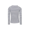 NŐI FELHAJTOTT UJJÚ PÓLÓ Szövet82% poliészter, 14% viszkóz, 4% elasztánFehér/tengerészkék, fonalfestett csíkos kivitelTulajdonságokFeltekerhető ujj, a felkaron gombbal és pánttal rögzítveLekerekített nyak háromgombos pánttalBordázott szegélyű nyak és m