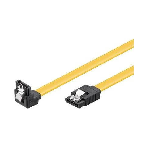 Adatkábel - 0,2m-es csatlakozókábel, male csatlakozók: 2× SATA (Serial ATA III) 6 Gbit/s átviteli sebességgel, kétoldalas végződés, hajlított végződés A PremiumCord gyártó egyedi SATA 3.0 adatkábelének az egyik felét egy speciális fém retesszel látták el, amely véd a véletlen kihúzással szemben. A kábel másik felét pedig egy hajlított csatlakozóval