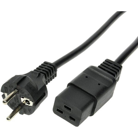 Tápkábel - csatlakozó kábel, hosszúság 3 m, male csatlakozó 1× e-típusú dugvilla Háromeres töltőkábel UPS-hez, 16 A maximális áramterheléssel.Műszaki adatok:Szín:FeketeVezető keresztmetszete:3 x 1,5 mm2Áramterhelés:Max. 16 AFeszültség:230 VKábel hosszúsága:3 m