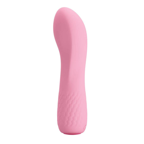 Orvosi minőségű szilikonból készített, puha tapintású, kissé hajlított kialakítású, ergonómiailag tervezett, 12 rezgési funkcióval rendelkező, a g-pont izgatására is alkalmas minivibrátor. Kezdők is kipróbálhatják !Tisztítása : minden használat előtt és minden használat után langyos szappanos vízzel és segédeszköz tisztítóval kell lemosni. Vízbázisú síkosító javasolt.