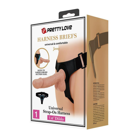 1 kép Pretty Love Jerry tapadótalpas dildó, univerzális hámmal (22,5 cm)