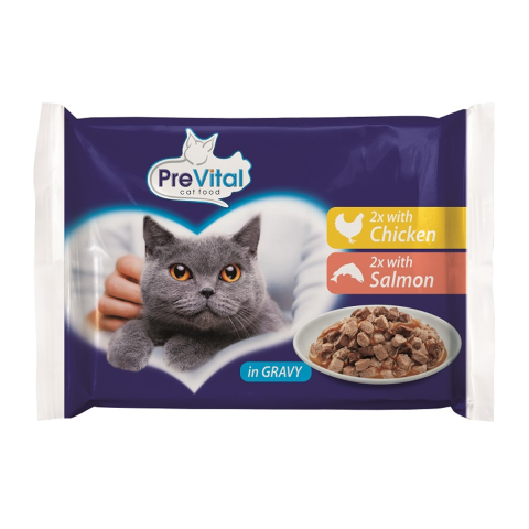 1 kép PreVital csirke és lazac alutasakos macskaeledel 4x100g