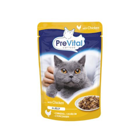 PreVital Macskaeledel, alutasakos, felnőtt macskáknak, 100 g, PREVITAL, csirke aszpikban macskaeledel termékleírás
