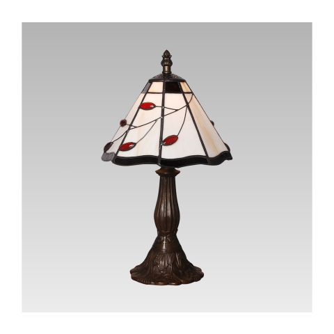 A Tiffany asztali lámpa, barna-piros színkombinációban, 38 cm-es magassággal rendelkezik, és a Prezent 173 modellkódot viseli. A lámpatest egy darab E14 foglalattal van ellátva, amely cserélhető fényforrás használatát teszi lehetővé. A termék klasszikus t