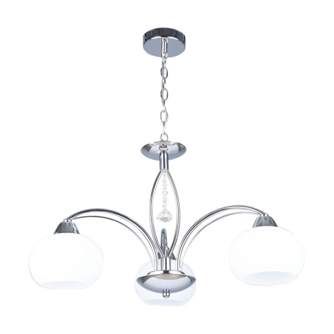 Az Aragona Prezent 61457 csillár klasszikus stílusban készült, háromkaros kialakítással és elegáns kristály díszítéssel. A lámpatest fém és üveg anyagokból áll, króm és fehér színkombinációval. A csillár három darab E27 foglalattal rendelkezik, amelyekbe