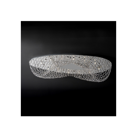 A Luxera Elipthon Luxera 69048 mennyezeti kristály lámpa tizenkettő G9-es foglalattal rendelkezik, így többféle cserélhető fényforrás használatát is lehetővé teszi. A modern stílusú lámpatest króm színű fém és áttetsző kristály anyagokból készült, amelyek