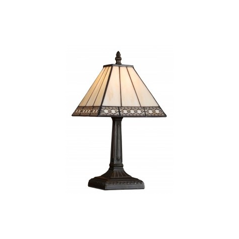 A Tiffany asztali lámpa szögletes kialakítással és 34 cm-es magassággal rendelkezik, amelyet a Prezent márka jegyez. A lámpatest egy E14 foglalattal van ellátva, amelyhez külön megvásárolható fényforrás illeszthető. A termék nem szabályozható, kapcsolóval
