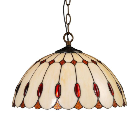 Ez a Tiffany függesztett lámpa a hagyományos ólomüveg technikát ötvözi a modern világítástechnikával. Színes üveglapjai egyedi fényszórást biztosítanak, amely kellemes hangulatot varázsol a helyiségbe. Klasszikus, vintage és art deco stílusú otthonok töké..