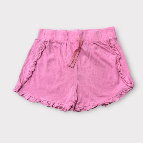 Rózsaszín rövidnadrág Dereka gumis és passzés, oldalán és alján kicsi fodorral. Kellemes pamut anyag. Szép állapotú.