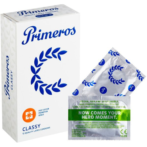 Óvszer - klasszikus, latex, általános síkosító, méretek 54 × 190 mm (Sz×H), 12 darab a csomagban Az elsőrangú PRIMEROS Classy 12 db óvszerek érdekes jellegzetességei A remek PRIMEROS óvszerek ideális megoldást jelentenek a fogantatás és a nemi betegségek elleni védekezésre Hétköznapi síkosítás Az