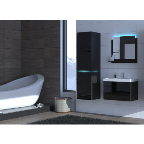 Modern fürdőszobabútor Alius 32 magasfényű fekete. Ezen kívül vásárolhat LED -világítást ( fehér, kék, zöld, piros vagy 16 szín) és rögzítőcsíkokat a készlethez. ELŐRENDELHETŐ! Az ALIUS 32 fényes fürdőszobabútor tökéletes megoldás azoknak, akik értéke