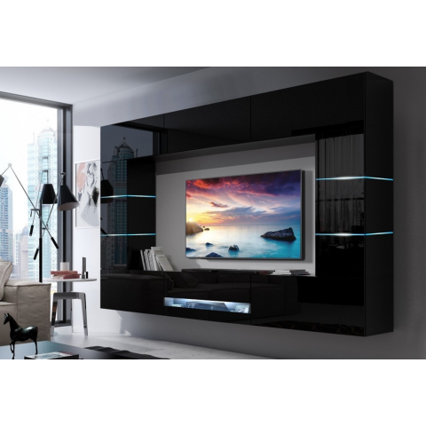 1 kép Prince Brandon Concept 62 nappali bútor szett magasfényű fekete (273cm)