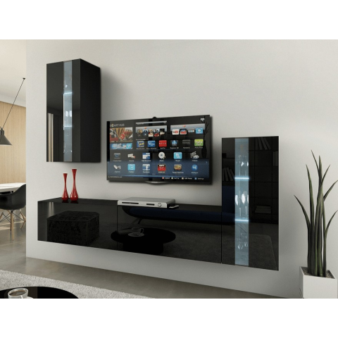 Prince Concept 47 nappali bútor szett magasfényű fekete (219cm) bútor termékleírás