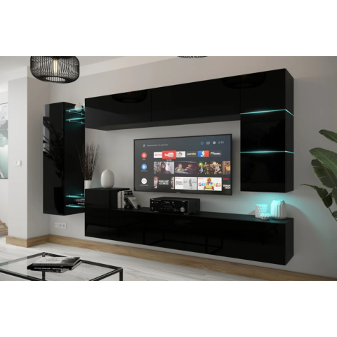 Prince Concept NEW 90 nappali bútor szett magasfényű fekete (290.6cm) bútor termékleírás
