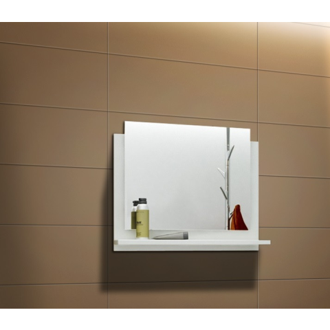 Prince fehér polcos fürdőszobai tükör. Falra szerelhető konstrukció. LUNA / DREAM / IBIZA / BOMBER / LIKE tükör - fehér MÉRETEK: Tükör szélesség: 60 cm Tükör magasság : 50 cm Tükör mélység: 14 cm